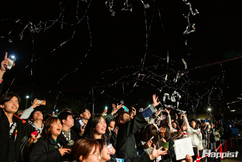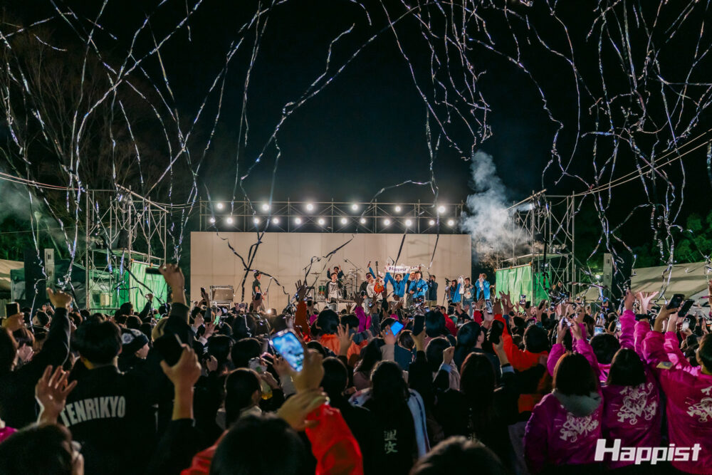 3月27日の夕づとめ後に、東西泉水プール前広場にて、教祖140年祭学生おぢばがえり大会の前夜祭「春Fes140」が開催されました。